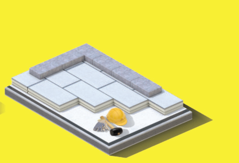 ISOLmat XPS si posa a secco sul vecchio pavimento o sulla guaina bituminosa, non necessita di collanti o sigillanti perché il mattone funge da zavorra. Protegge lo strato super昀椀ciale preesistente dai raggi UV del sole, dalle intemperie e dagli stress quotidiani riducendo la velocità dell’escursione termica.